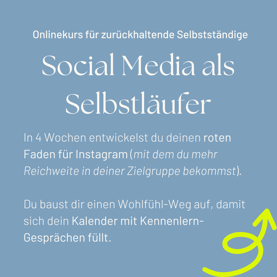 ... ein begleiteter Online-Kurs mit kleiner Gruppe für zurückhaltende Selbstständige, die nicht vor der Kamera tanzen oder irre viel Zeit mit Instagram verbringen möchten.